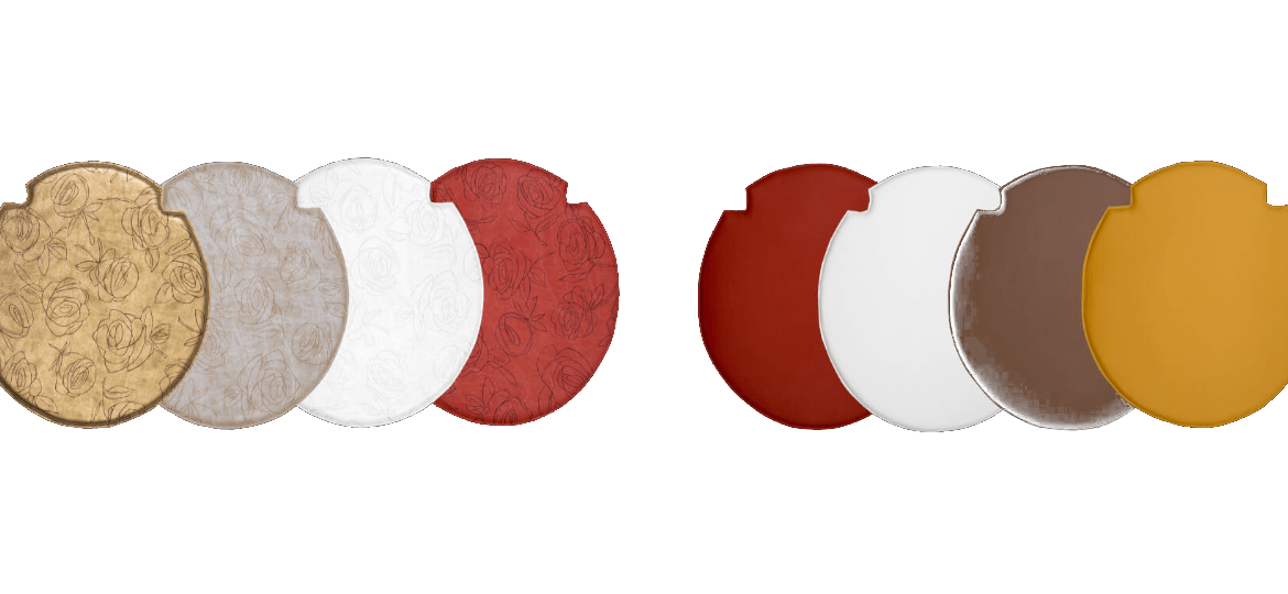 - 4 colori di finitura: Bianco Avorio, Rosso Rubino, Giallo Miele e Tortora;